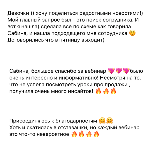 – Cтала более уверенным и твердым профессионалом в инфобизнесе, благодаря этому практически перестала волноваться, когда на обучениях экспертов выступает спикером
