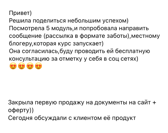 – Благодаря полученным знания по инфобизнесу, написала своим клиентам, чтобы усовершенствовать их документы, продала дополнительные услуги